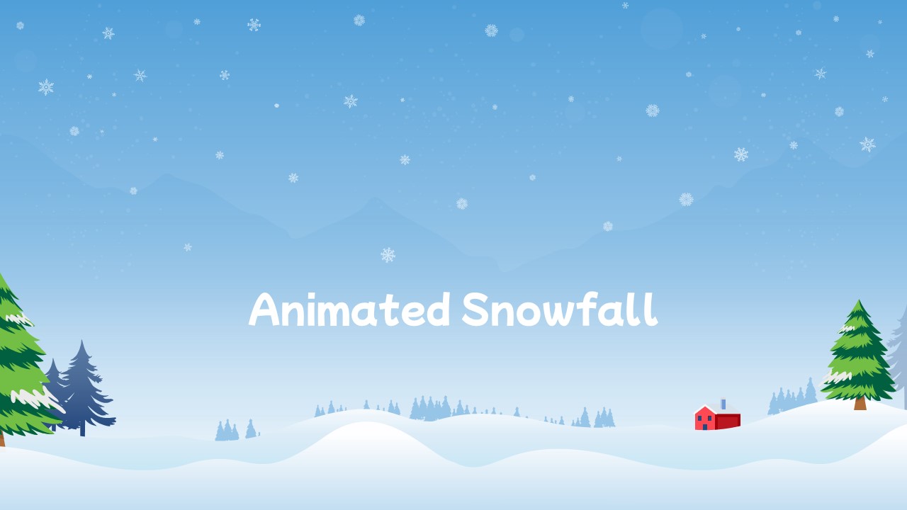 The main highlight is the animated snowfall that adds motion while keeping the slide visually balanced. The winter landscape creates depth through layered hills and trees, while the soft color palette maintains readability. The slide works effectively as an opening slide, background visual, or closing message for seasonal decks.