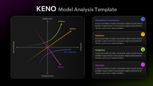 This professional KENO Model Analysis template transforms complex customer satisfaction frameworks into visually compelling presentations that drive strategic decision-making. The template is completely editable in both Microsoft PowerPoint and Google Slides, offering seamless customization for your specific analysis needs. Perfect for product managers, business analysts, and customer experience teams who need to categorize features based on customer satisfaction impact and fulfillment levels.