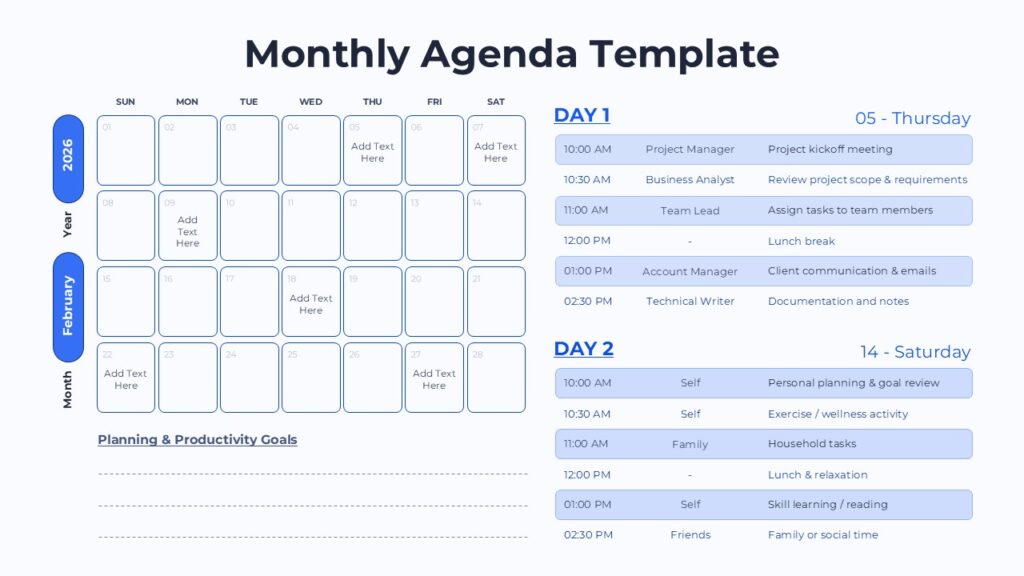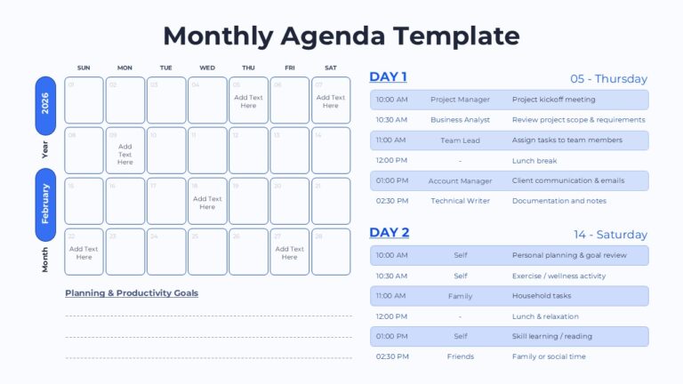 Monthly Agenda Planner and Daily Schedule Template for PowerPoint & Google Slides