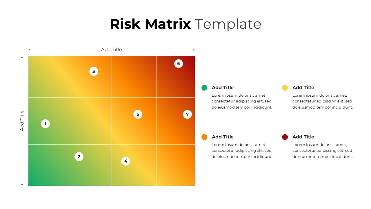 - Side Panel Annotations: Colored bullet points allow you to explain risk levels, mitigation strategies, or decision guidelines without cluttering the matrix.