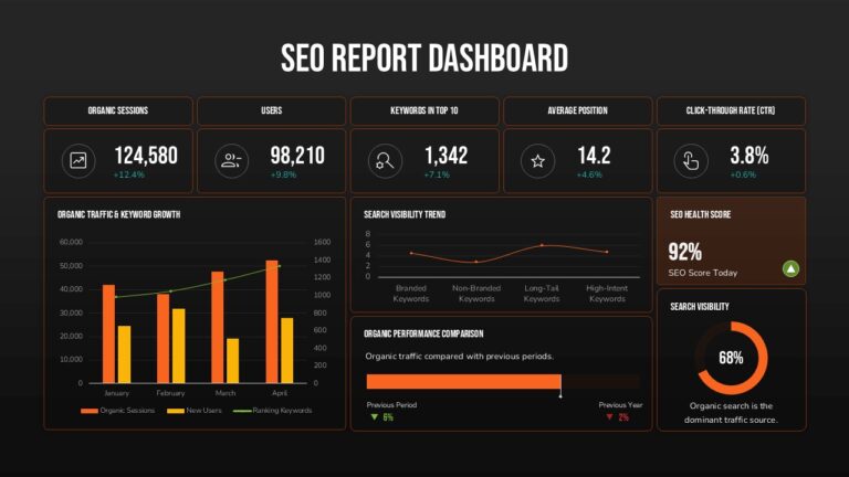 SEO Performance Dashboard Analytics Template for PowerPoint & Google Slides