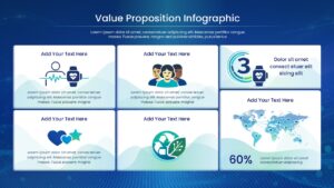 This value proposition infographic presentation focuses on clearly communicating key benefits, impact metrics, and strategic strengths in a visual format. It is a fully editable presentation template designed for professional storytelling and data-driven messaging. The slides are compatible with PowerPoint and Google Slides, making customization fast and accessible. The layout is ideal for summarizing offerings, outcomes, and brand value in a structured way. The design uses modular infographic panels that guide viewers through multiple value points while maintaining visual consistency. It supports concise messaging, visual hierarchy, and clear emphasis on results, audiences, and global reach.